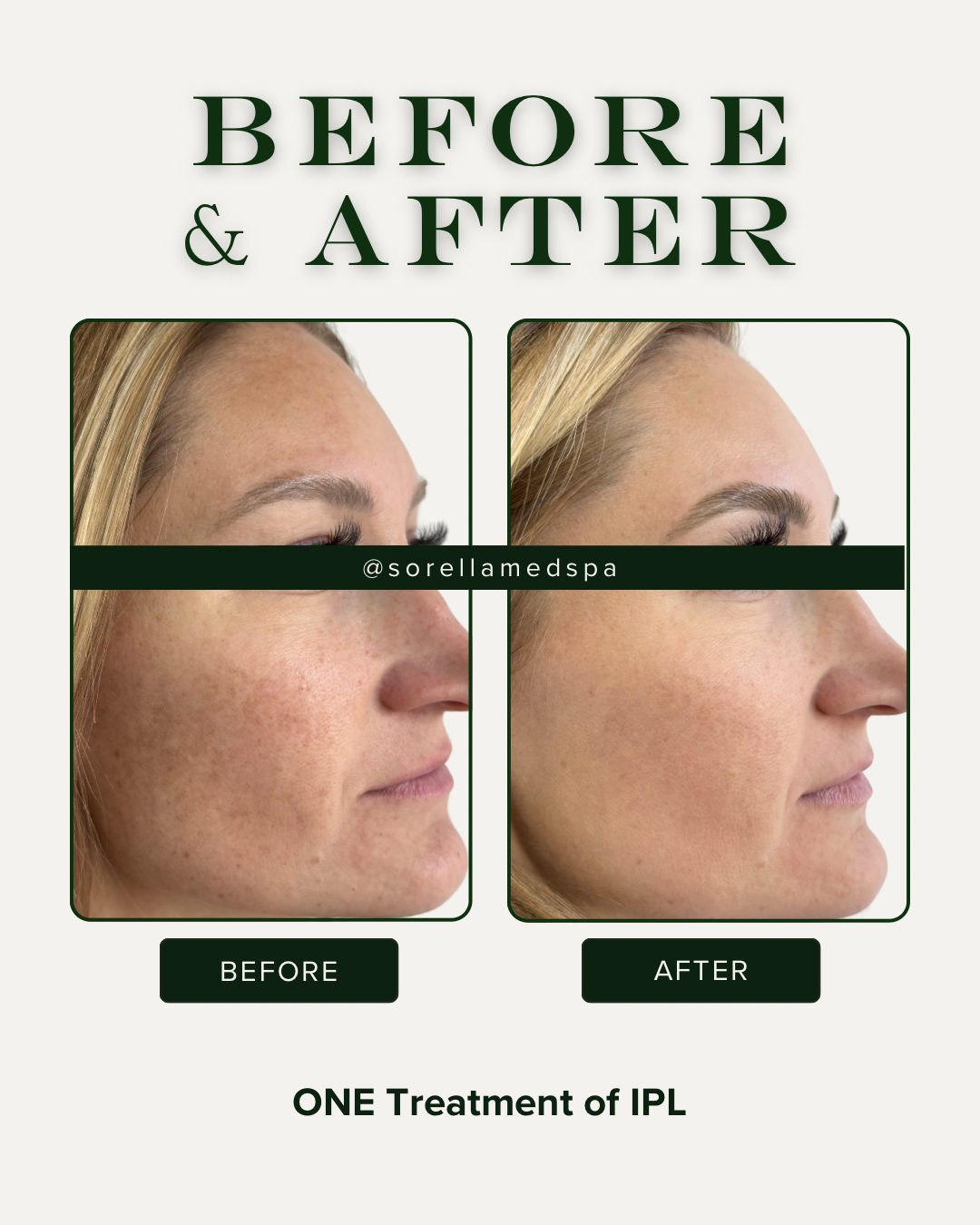 After your treatment, you may experience a slight sunburn feeling. Redness, some itching, and swelling can occur. This should subside within 24 hours. You will notice the pigmented areas darkening, like coffee grounds on the skin. This is entirely normal and part of the healing process. It’s important not to pick at these areas, but allow them to fall off naturally. In 7-10 days the darkened pigmentation will flake off, and the final result is a luminous, clear skin tone. In the meantime, makeup can be worn immediately and can cover up the skin for an even appearance. It is crucial to avoid direct sun exposure for 2 weeks following your IPL treatment.