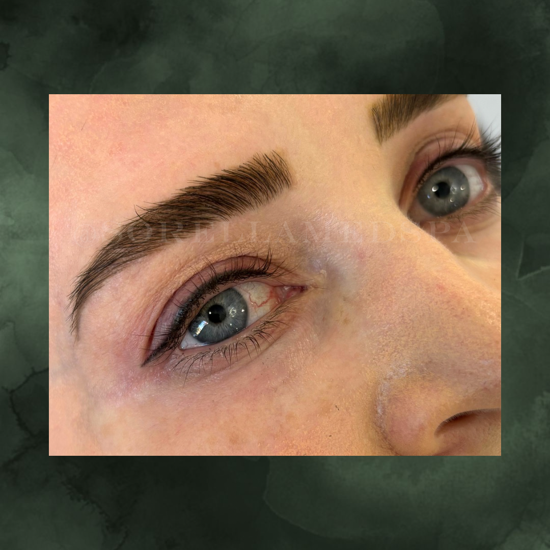 A semi-permanent makeup technique for enhancing the appearance of the eyebrows. Pigment is implanted into the skin using a handheld tool made up of tiny needles. A natural form of cosmetic tattoo to create super fine hair strokes that resemble hair. Microblading can help provide symmetry and fullness to the brows. The 8 week touch up is a separate cost, and is required to perfect your brows.